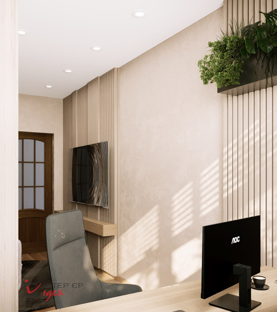 Дизайн домашнего офиса начинался с пожеланий владельца, с определения с узким многофункциональным направлением данной комнаты, и спецификой работы в ней.