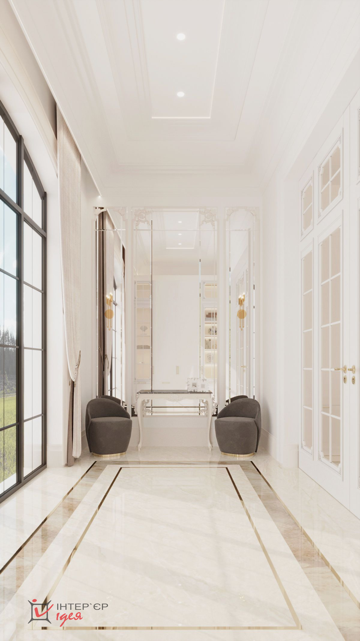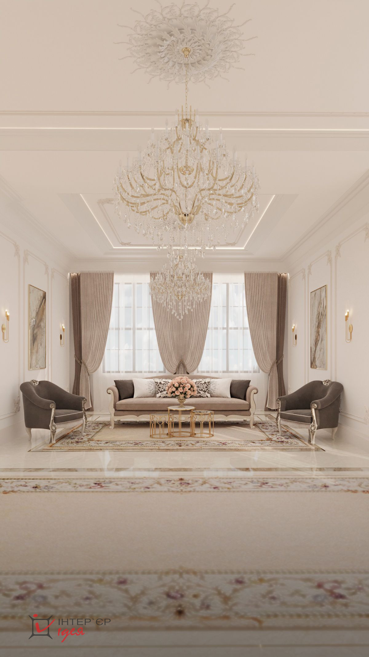 В дизайне интерьера преобладают светлые, пастельные оттенки (бежевый, кремовый, золотистый), что создает атмосферу роскоши и изысканности.