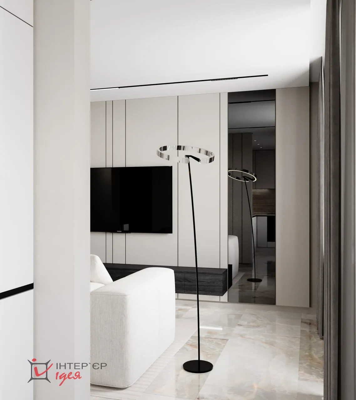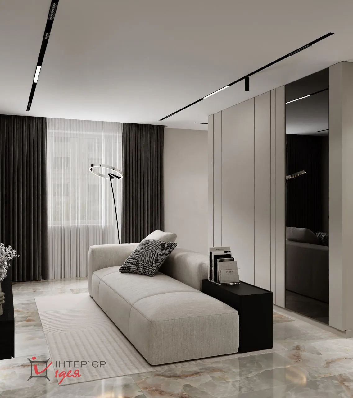Заказчице, молодой практичной владелице квартиры, понравилась строгость и лаконичность. Она выбрала стиль, который требует продуманную планировку, отсутствием лишних деталей, а главное требует продуманной организации пространства и внимания к деталям. Стиль минимализма, его концепция – простота и функциональность.
