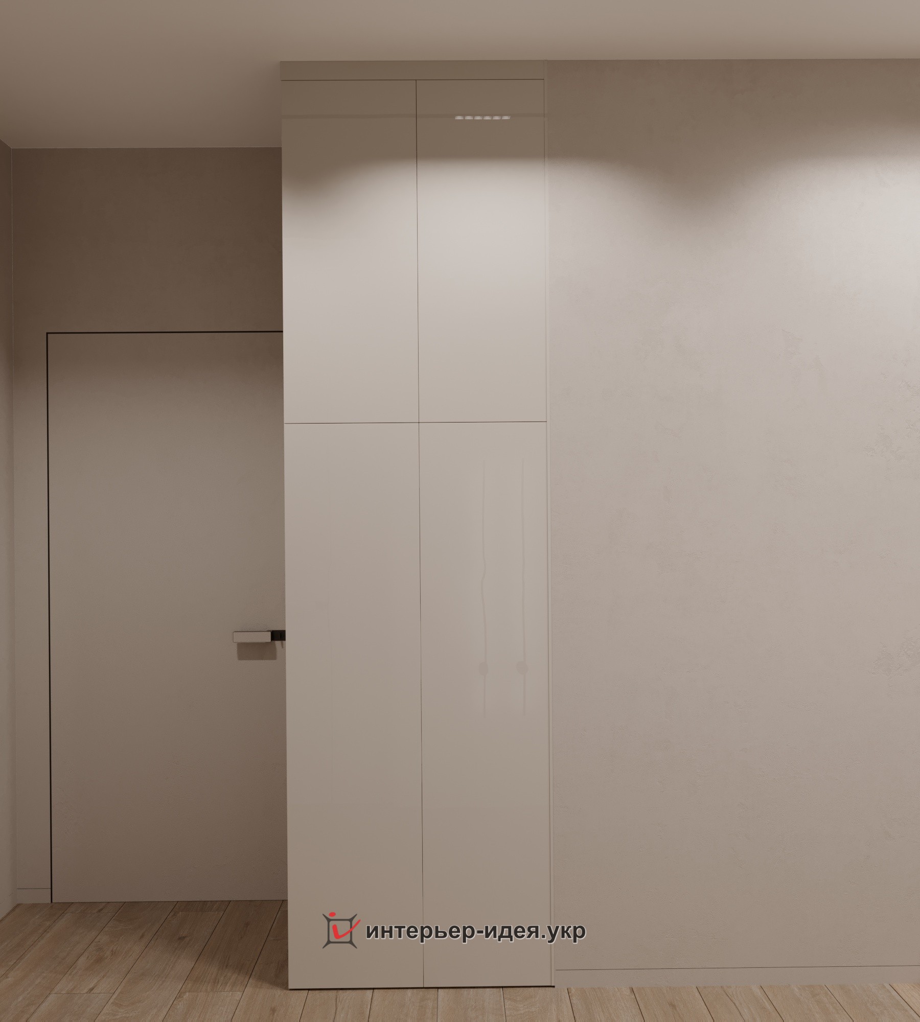 Спрятав ее в шкаф, который выглядит продолжением стены.