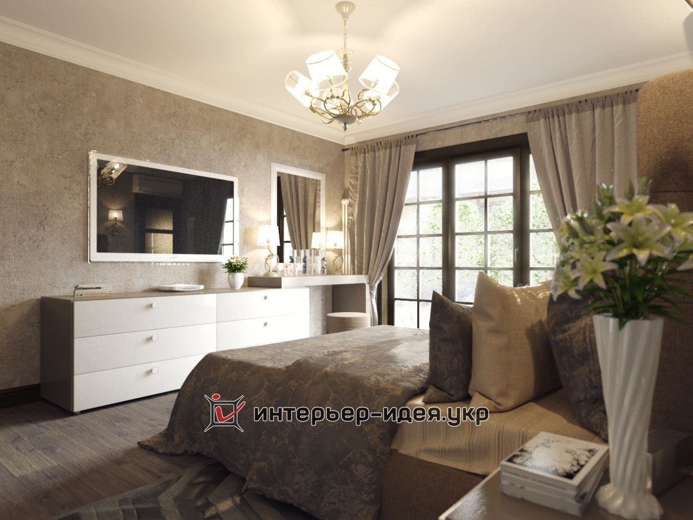 Дизайн спальни с выходом на террасу, с. Мошны.