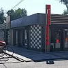 Важную роль в оформлении фасада магазина играет подсветка. Поэтому решено было добавить подсветку красного цвета в колоннах и прожекторы направленного света во входных зонах. Освещение является сильнейшим инструментом создания желаемой атмосферы, настроения. Кроме того, осветительные приборы являются составной частью рекламы. Для этого постеры на заднем фасаде также подсвечиваются прожекторами.